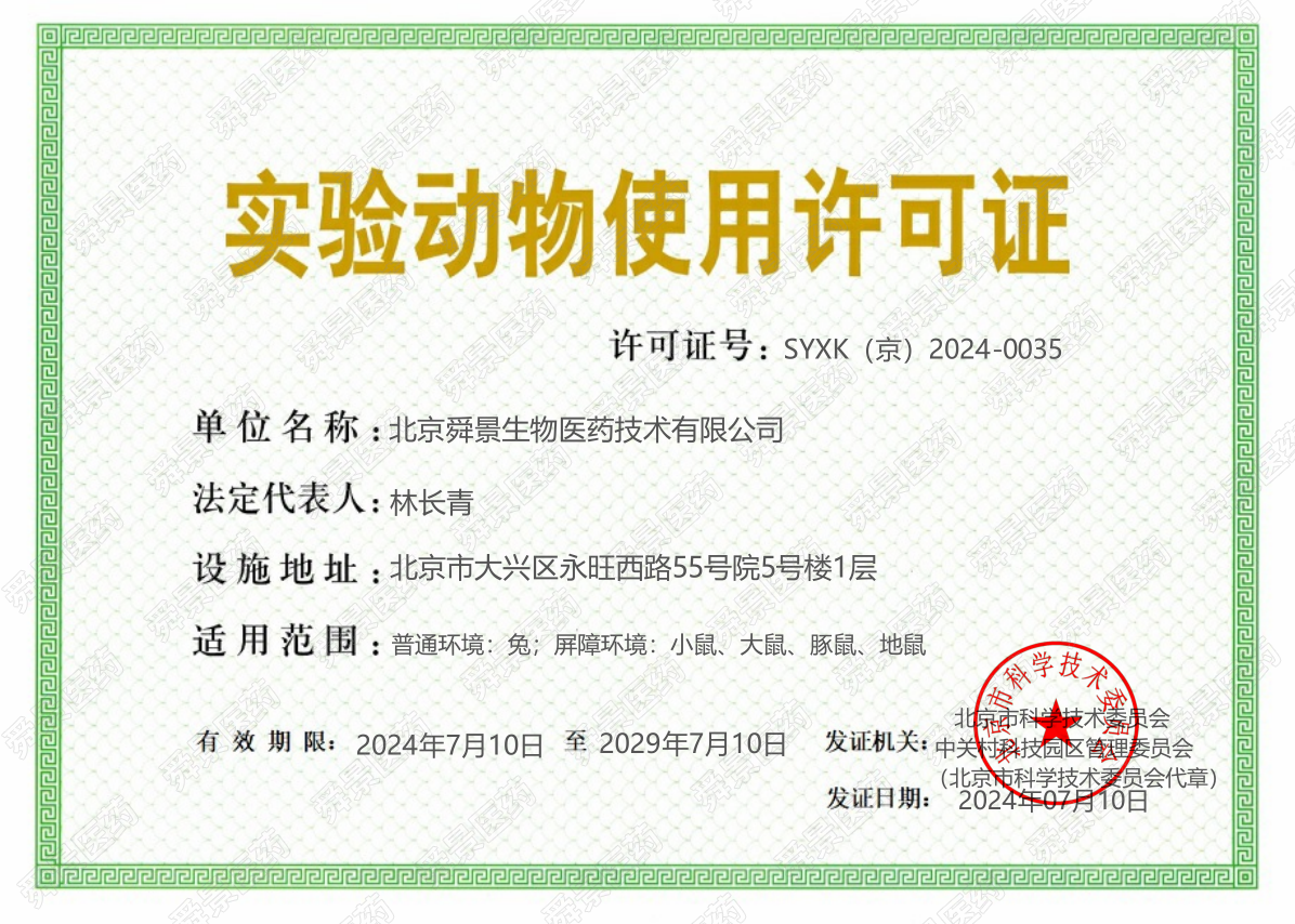 喜訊!舜景醫(yī)藥實(shí)驗(yàn)動(dòng)物管理中心獲頒“實(shí)驗(yàn)動(dòng)物使用許可證”