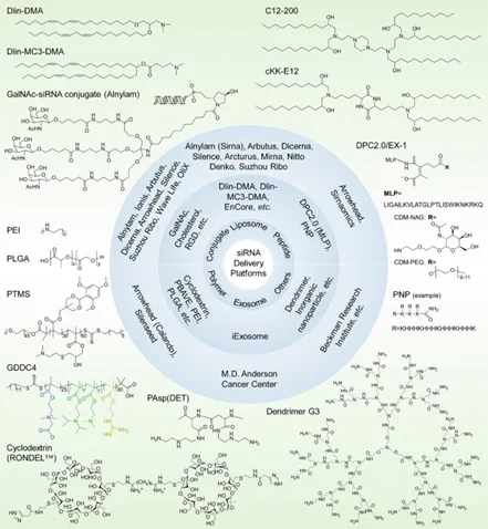 圖注:經(jīng)過臨床前和臨床評(píng)估的siRNA遞送平臺(tái)