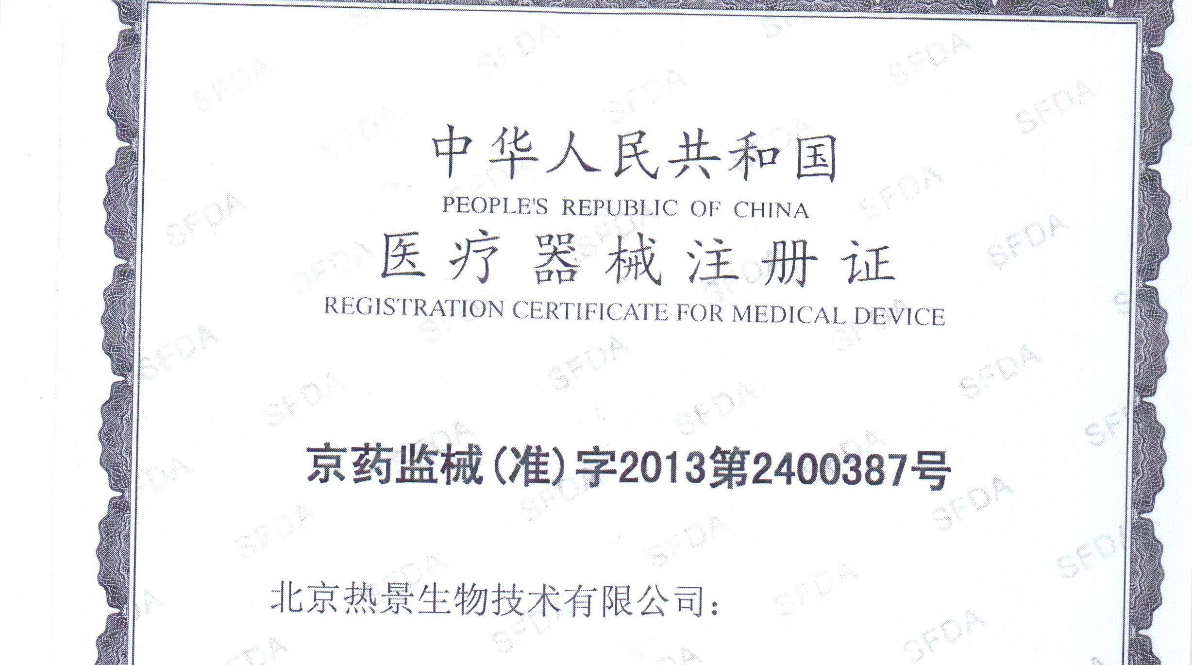 通過(guò)多人的共同努力,熱景生物心肌脂肪酸結(jié)合蛋白定量測(cè)定試劑盒(上轉(zhuǎn)發(fā)光法)獲得醫(yī)療器械注冊(cè)證,注冊(cè)證號(hào):京藥監(jiān)械(準(zhǔn))字2013第2400387號(hào)。